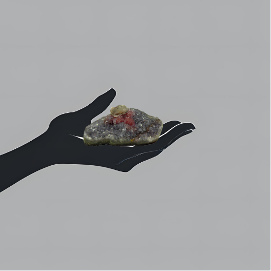 Grey Amethyst (Agate Banded) with Clear Calcite and Red Hematite | Uruguay | 266 g | 145 x 140 x 80 mm.