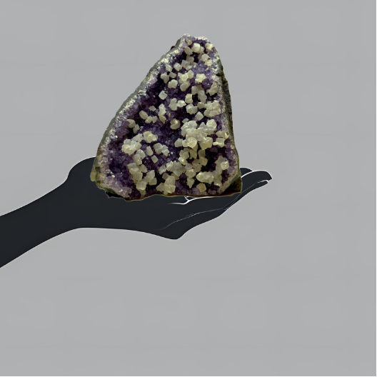 Deep Violet Amethyst Geode with White Calcite Blooms | Uruguay | 1,470 g | 130 x 105 x 90 mm.