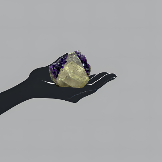 Rare Amethyst Cluster with Translucent Calcite Pyramid | Uruguay | 566 g | 75 x 105 x 110 mm.