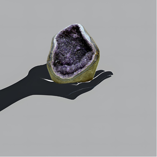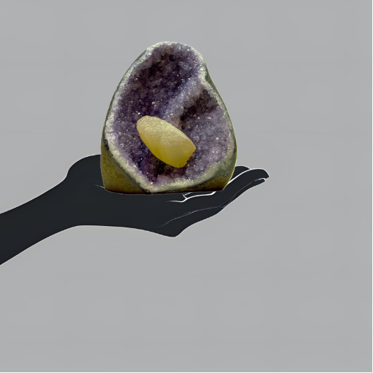 Purple Amethyst Geode with Yellow Dogtooth Calcite | Uruguay | 1,384 g | 130 x 110 x 110 mm.